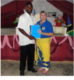 The team from Zambia traveled to Dar Es Saleem for the KIMI Leadership training which was hosted in Calvary Tabernacle Church thus spearheading the PowerClub move into the Zambian churches coming under the cover of Bishop and a pilot project in the school owned and run by his wife also present at the training seen here receiving her curriculum. A Chichewa translation is being worked on as well. |